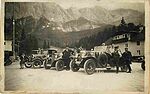 Rober Eberhardt I Generation ,am mittleren Fahrzeug stehent, bei einer Ausfahrt in den Alpen.